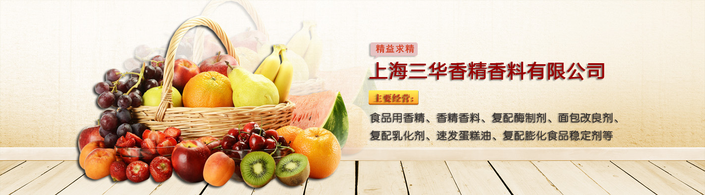 上海三华香精香料有限公司是从事食用香精,香精香料销售的专 业公司。主要分类:炒货食用香精,冷饮饮料用食用香精,乳品植物蛋白类,大众型香精,糖果香精,乳化香精,油质香精,水油香精,水质香精,咸味香精,粉末香精,复配膨化食品稳定剂,复配酶制剂,...